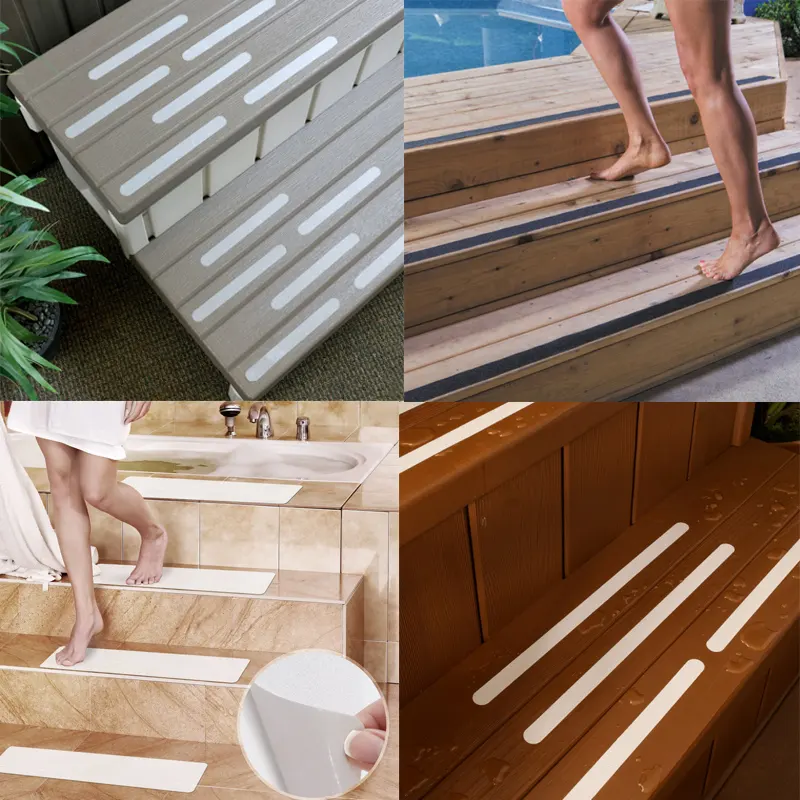 Deassco makes two types of Anti Slip tape: a premium 0.75mm-0.85mm Anti Slip tape, and a less expensive 0.6mm Anti Slip tape. The main application is widely used in slippery places such as bathrooms, bathtubs, swimming pools, stairs, floors, steps and other slippery places or other special protection. Features: Substrate, coated with acrylic oil glue, soft material, ecological environment protection, good flexibility, chemical corrosion resistance.